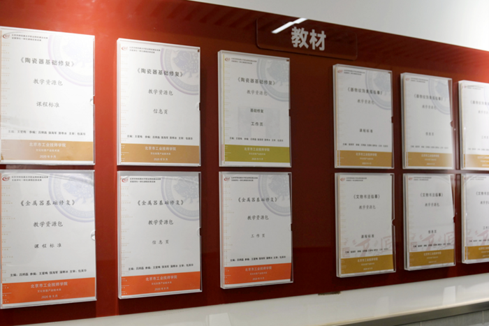 沒有成型的教材,王愛梅等老師就與這些特聘專家和技能大師一起探討,與團(tuán)隊(duì)教師合作搭建課程體系。現(xiàn)已完成10門一體化課程標(biāo)準(zhǔn)和教材、學(xué)材的開發(fā),并打通了中高級直升人才培養(yǎng)機(jī)制,同時(shí)完成主編《陶瓷器基礎(chǔ)修復(fù)》《陶瓷器文物修復(fù)》,參編《金屬器修復(fù)》等課程資源包。