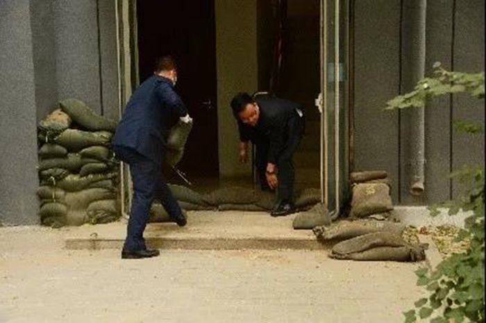 此次防汛應急演練內容是假設雨季汛期來臨時連降暴雨,雨水倒灌進嘉賓樓北側安全出口,發生了險情的應急處置。演練中,巡查人員發現險情后,迅速報告防汛指揮辦公室,防汛組長下令立即啟動防汛應急預案并趕往現場進行指揮,各部門防汛隊員接到指令后迅速趕到現場,防汛隊員使用防汛沙袋堆積在發生倒灌的安全出口處,防止水流繼續涌入,并使用掃帚、鐵鍬等防汛工具將場內積水清理進排污井內,工程部開啟相關抽水泵清除場內積水。整個演練過程用時20分鐘,參演人數10余人,物資準備充分,人員配合默契,工作有條不紊,應急處置得當。