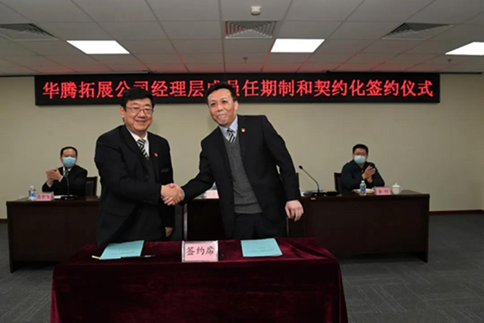 11月30日,華騰拓展召開公司經(jīng)理層成員任期制和契約化管理簽約儀式大會。北京化工集團黨委常委、組織部部長劉士義參加會議。集團總經(jīng)理助理、華騰拓展公司黨總支書記、董事長李泳代表拓展公司董事會與經(jīng)理層成員分別簽署了任期制、契約化協(xié)議,這標(biāo)志著北京化工集團企業(yè)經(jīng)理層成員任期制和契約化管理改革進入全面實施階段。